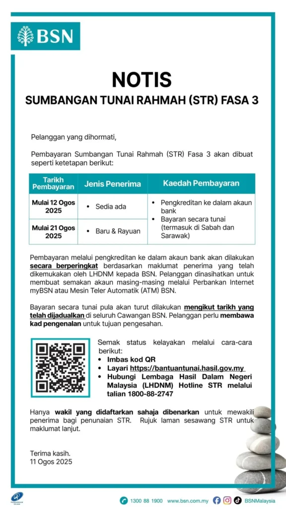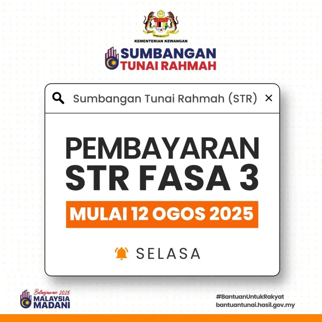 📅 Tarikh Rasmi Bayaran STR Fasa 3 Bermula 12 Ogos 2025